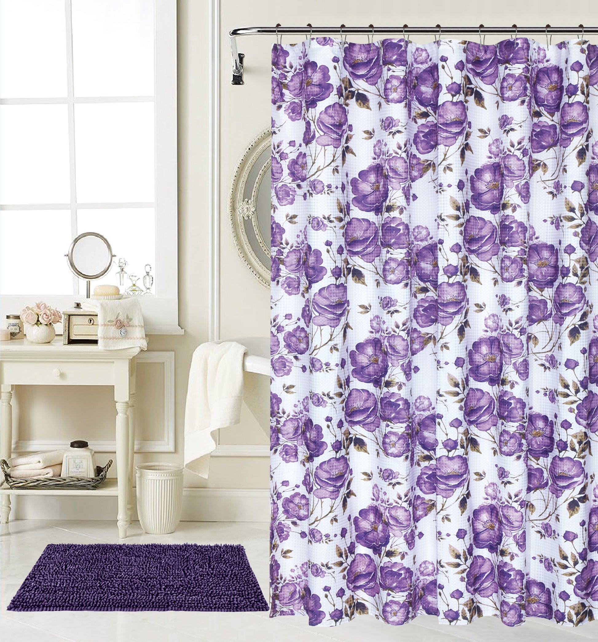 15PC Chenile Bath Mat Set Spring Collection Purple